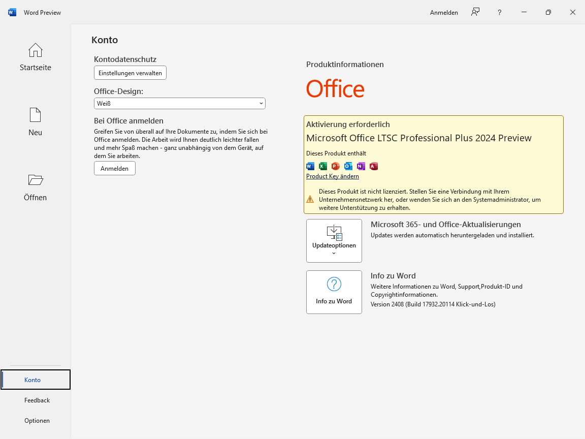 Internetverbindung zum Office 2024 Download