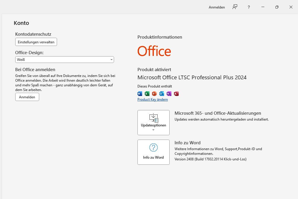 ACHTUNG: Wenn du auf deinem Computer Office 365 vorinstalliert hast, logge dich dort aus und deinstalliere das Office 365 komplett. Sonst erhältst du die Aufforderung, das Programm nach Ablauf der Testversion zu abonnieren – du hast jedoch mit Office 2024 Professional Plus eine unlimitiert gültige Lizenz erworben (ohne Ablaufdatum)!
