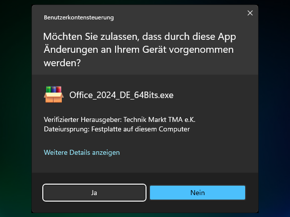 4. Wenn die Benutzerkontensteuerung erscheint, klicke wie im folgenden Bild auf «Ja».