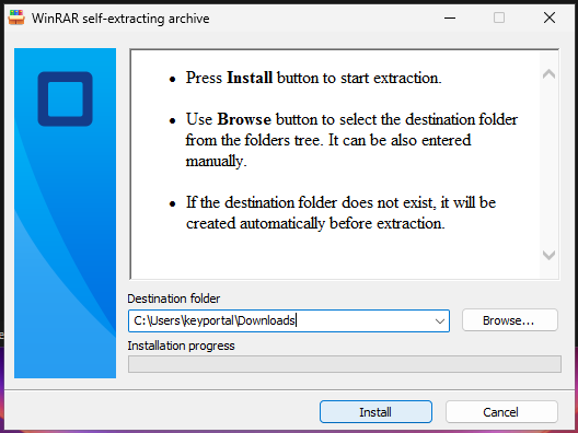 5. Klicke im sich öffnenden Fenster nun auf «Install» ohne Änderungen vorzunehmen.